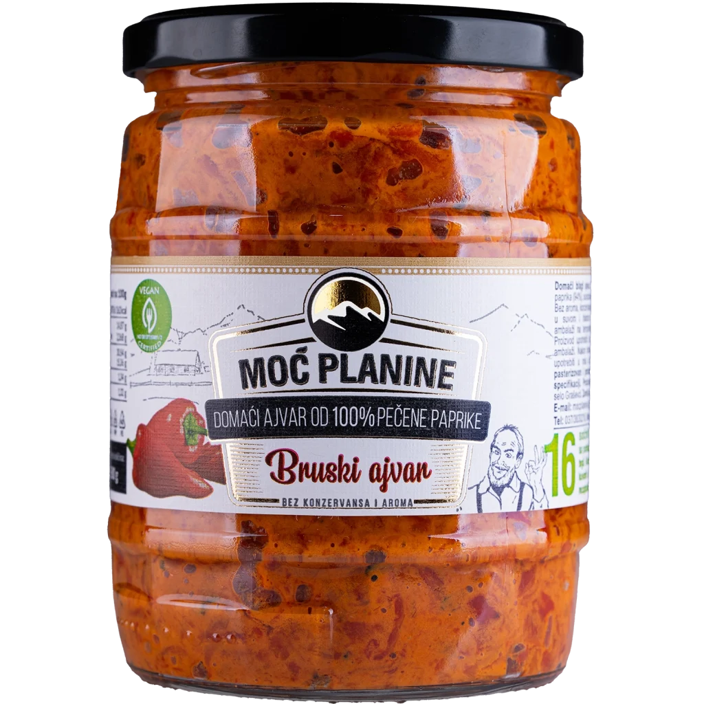 Homemade ajvar or Serbian caviar is one of the best-selling products from our cuisine. We carefully choose the sort of pepper, the old Serbian variety called Kurtovka, harvested in the fields around the Morava River, and then roast it on wood stoves. After that, the peppers are peeled by hand, ground and then slowly cooked in large pots at a low temperature, stirring constantly. Our ajvar is pure, traditional ajvar produced only from pepper, without artificial flavours, colours and preservatives. Taste and smell of our ajvar will bring back the older generations to their roots. We will remind them of the real taste and smell of ajvar, just as their mothers used to prepare it, while young people will learn what real Serbian traditional ajvar is like.