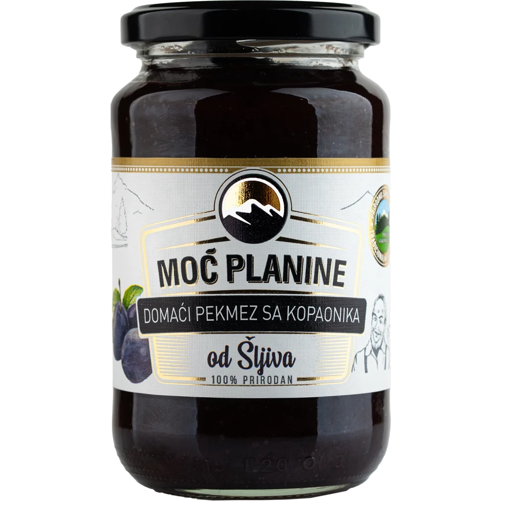 Homemade plum jam produced from a specially selected variety of plums picked at the foot of Kopaonik. We pick plums by hand in our plum trees, select the ripest dark blue fruits, and then cook them in battered pans over low heat with constant stirring until the desired aroma and taste is obtained. Ideal for pancakes. Without added preservatives, artificial colors and flavors.