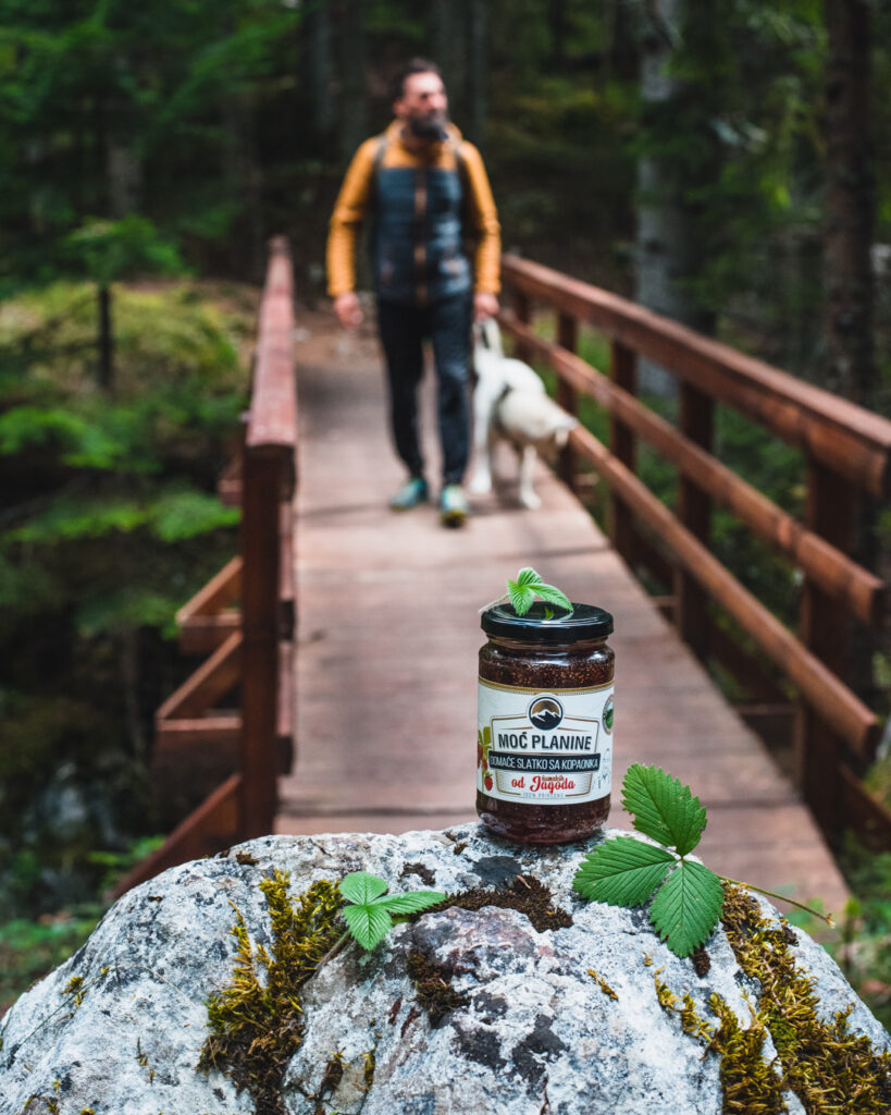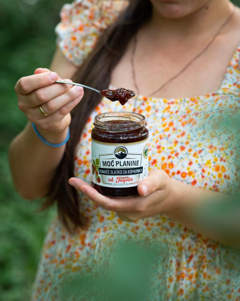 Домашнее варенье из земляники – это традиционный бренд горы Копаоник, которым вас обязательно угостят в каждом доме в деревнях у подножья горы Копаоник. Идеальный деликатес как с холодной водой, так и с блинами. Свежие плоды земляники, собранные вручную на солнечных полянках горы Копаоник, варим в сахарном сиропе в чугунных кастрюлях до достижения желаемой густоты и качества. Варенье из земляники имеет очень специфический вкус и аромат, и просто неизбежно, что оно есть у каждой домохозяйки в кладовой. Без добавления консервантов, искусственных красителей и ароматизаторов.